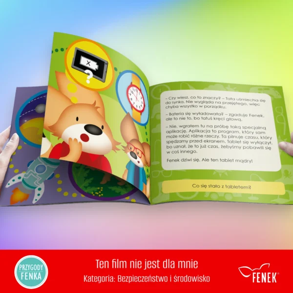 Fenek, ciekawski mały bohater, tym razem odkrywa, że świat internetowych filmików może być zaskakujący i nie zawsze przyjazny. Gdy rodzice są zajęci, Fenek ogląda na tablecie filmiki, które prowadzą go przez różnorodne emocje, od zaciekawienia po niepokój. Wędrówka przez cyfrowy świat staje się dla niego lekcją o tym, że nie wszystkie treści są odpowiednie dla dzieci. Na szczęście, z pomocą taty, Fenek uczy się, jak korzystać z tabletu w sposób bezpieczny, co jest głównym przesłaniem tej historii.